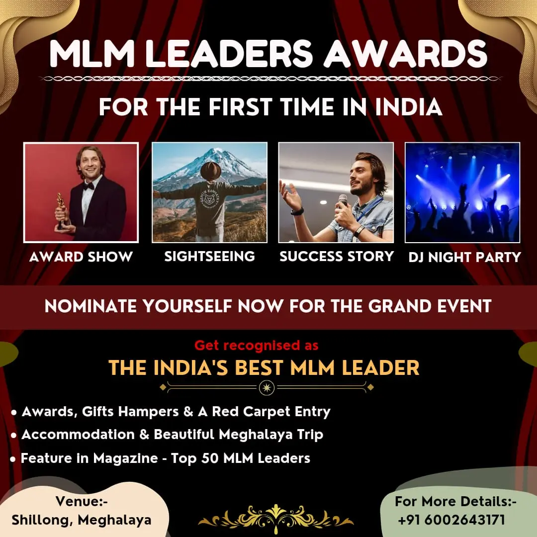A prestigious award ceremony for the Best MLM Leaders in India. The Leaders who brought some positive changes in the peoples life.