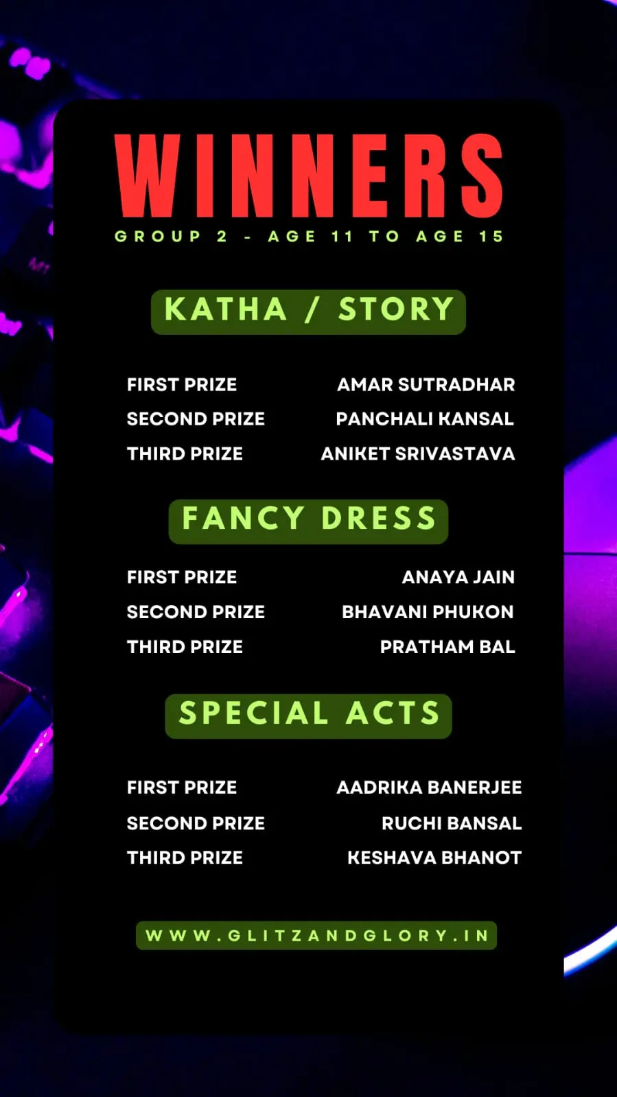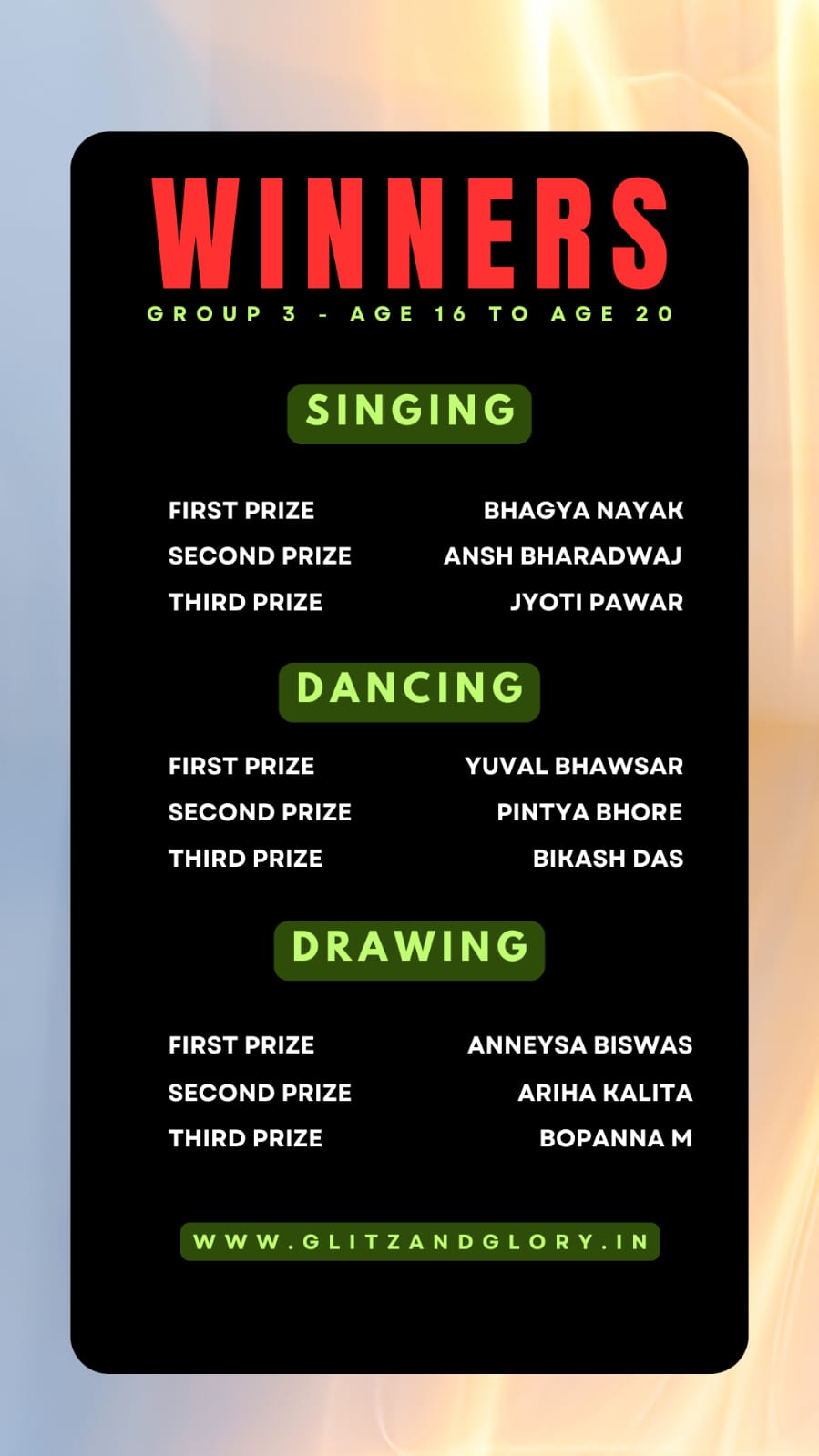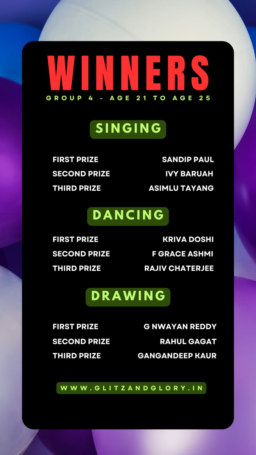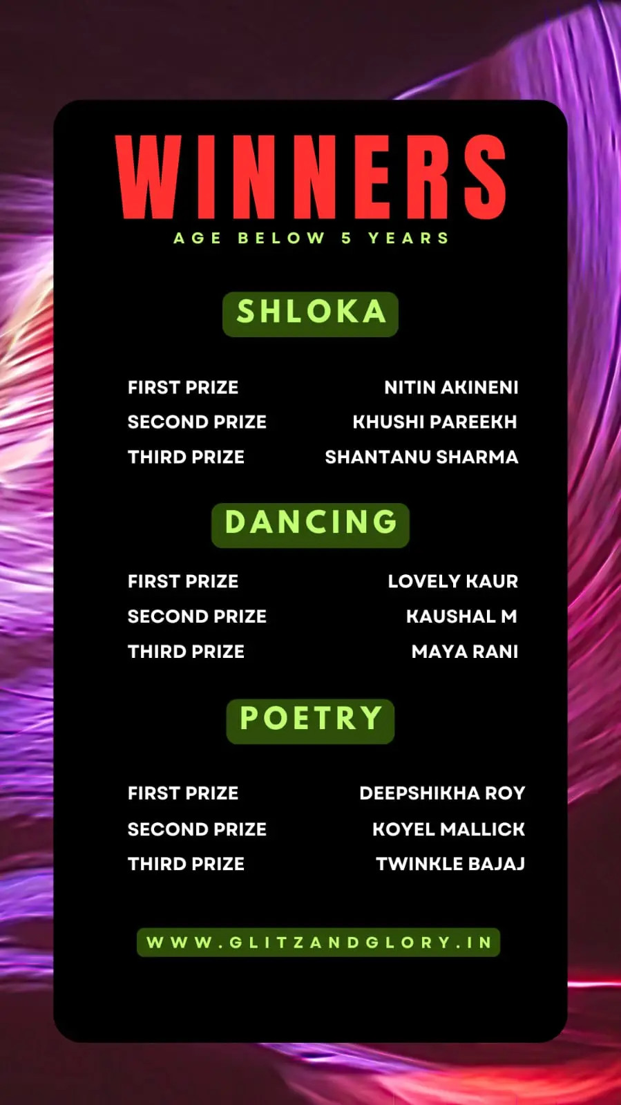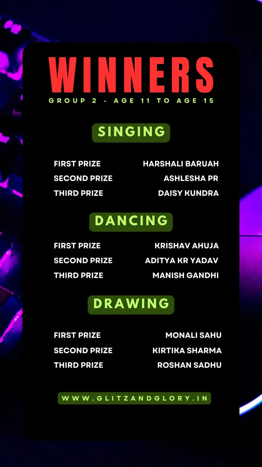 And finally we have the winners of the event from different age groups & different parts of India.