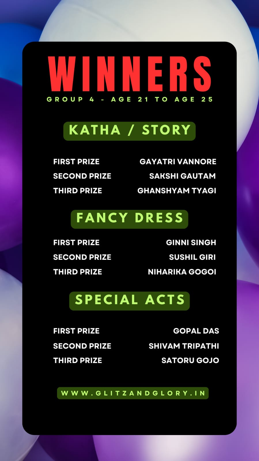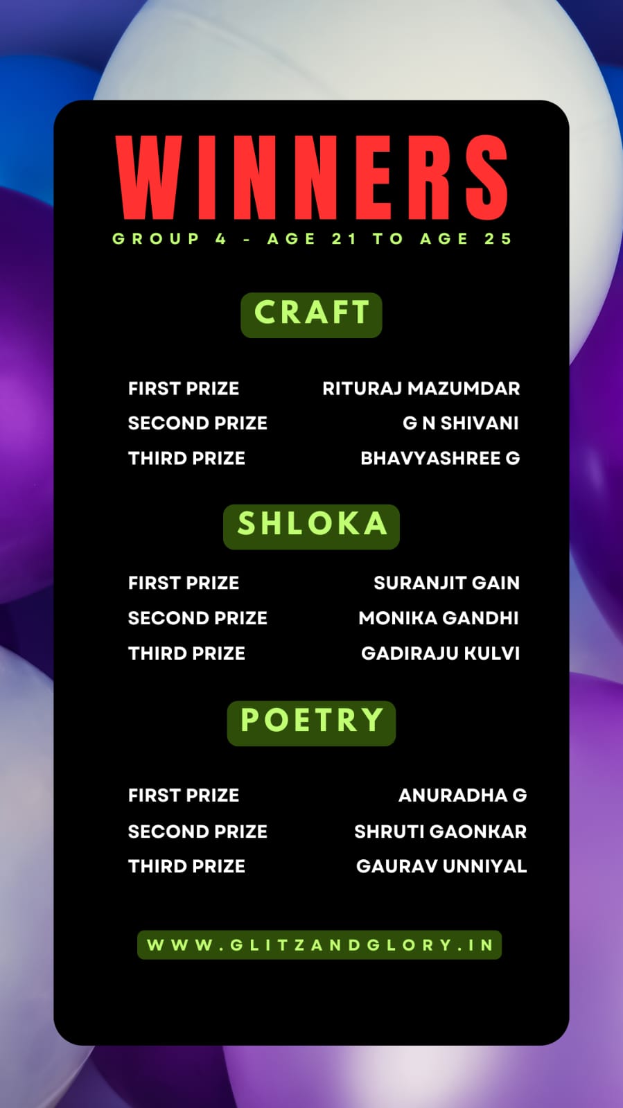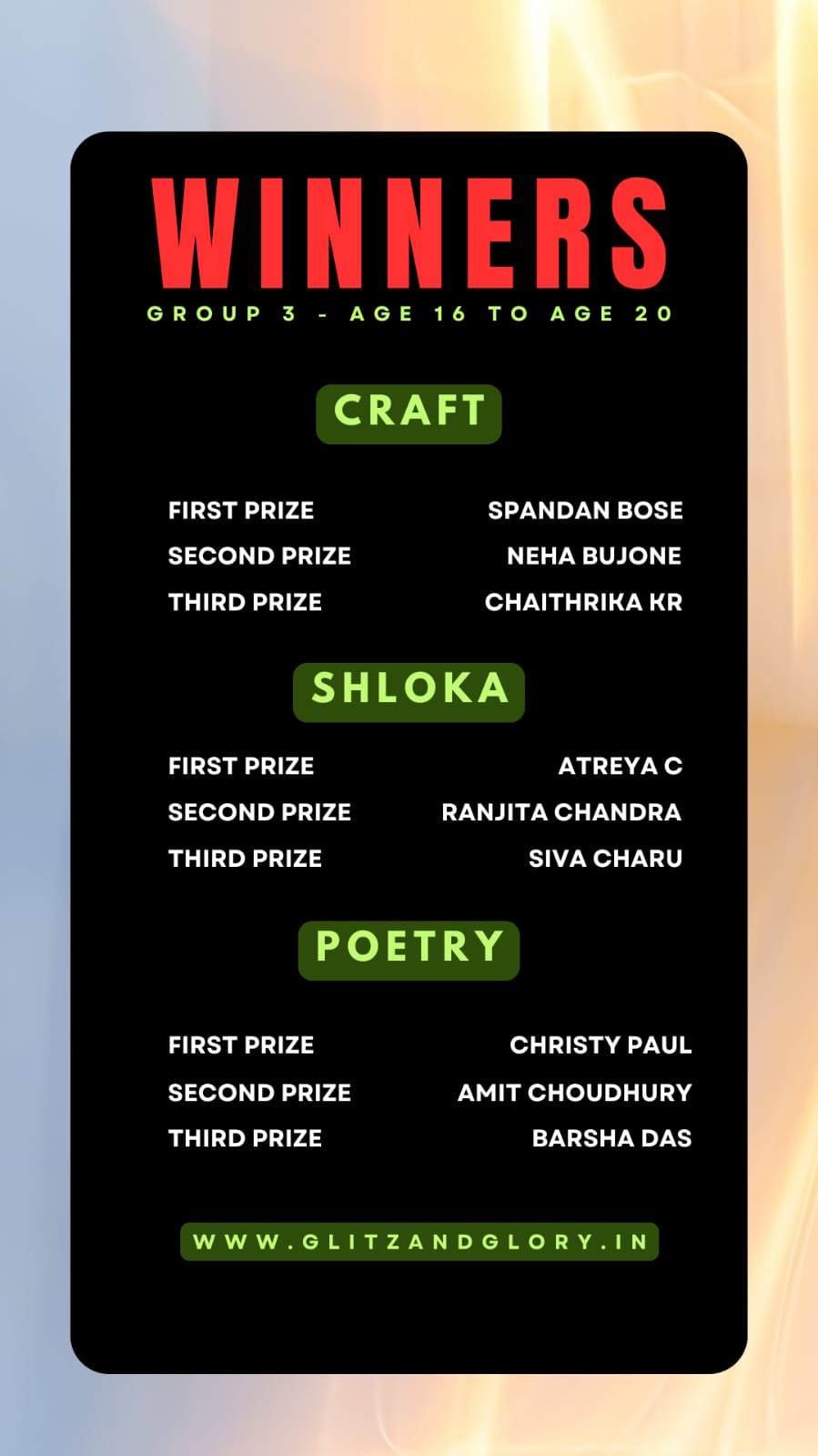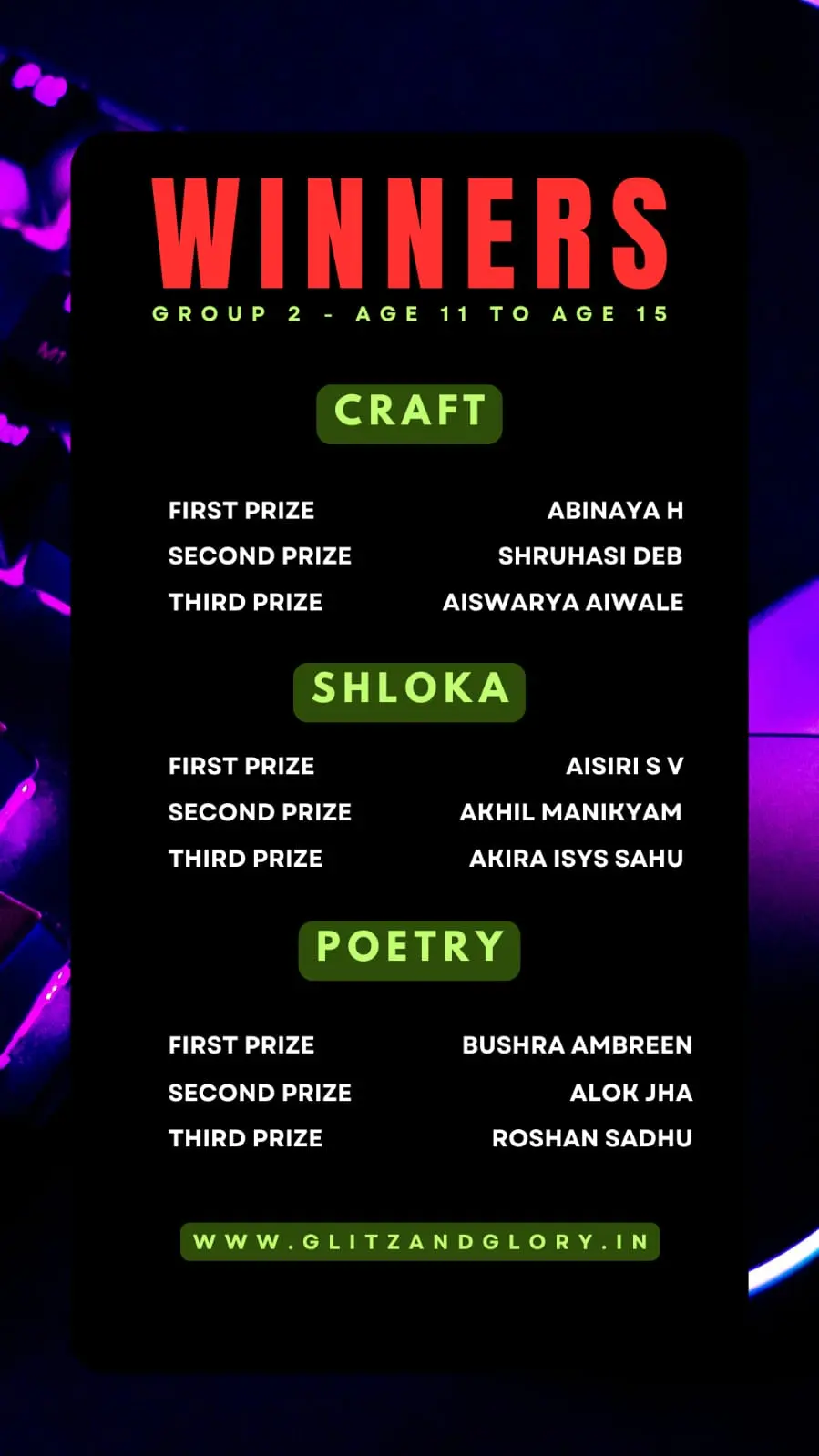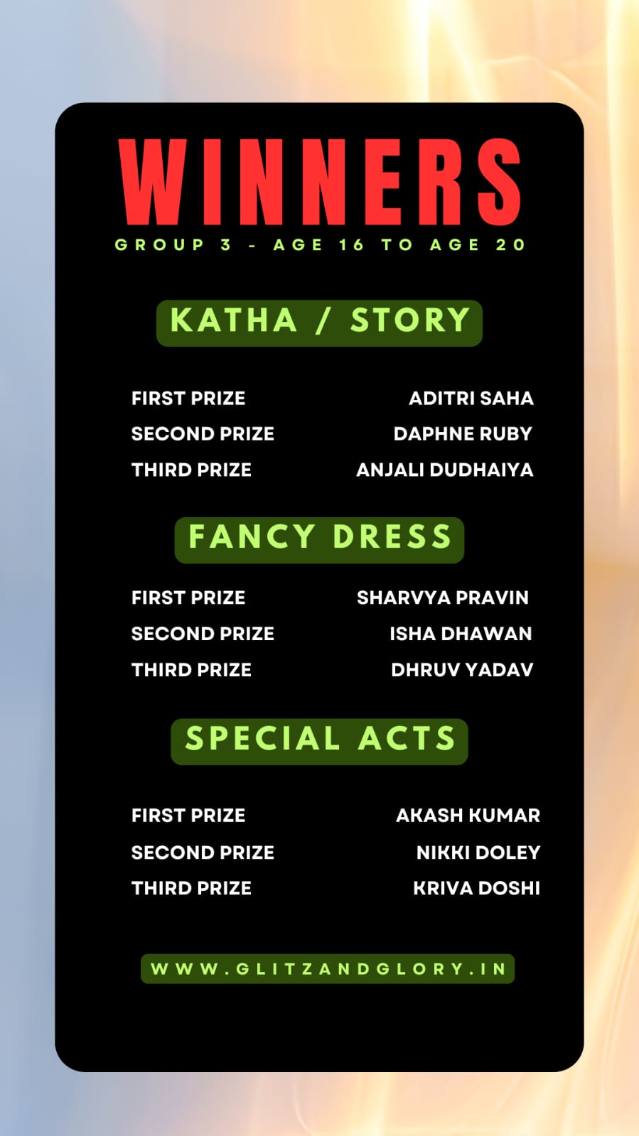 And finally we have the winners of the event from different age groups & different parts of India.