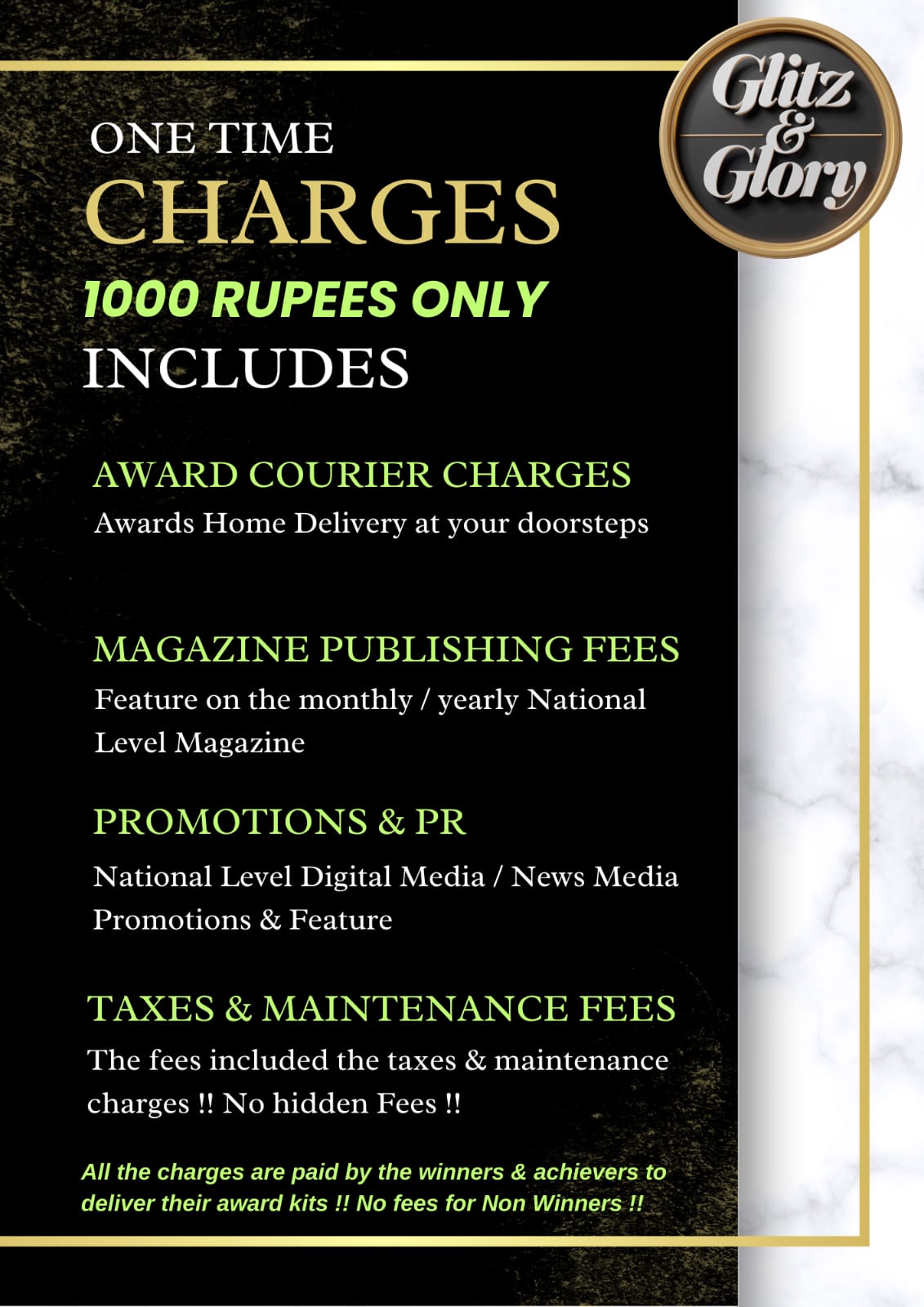 NOTE:- If you win this National Level Contest, winners have to pay an One Time Charges 1000/- for the Award Courier Delivery Charge, PR Promotions & Publishing Charges, Maintenance Fees & Taxes !!