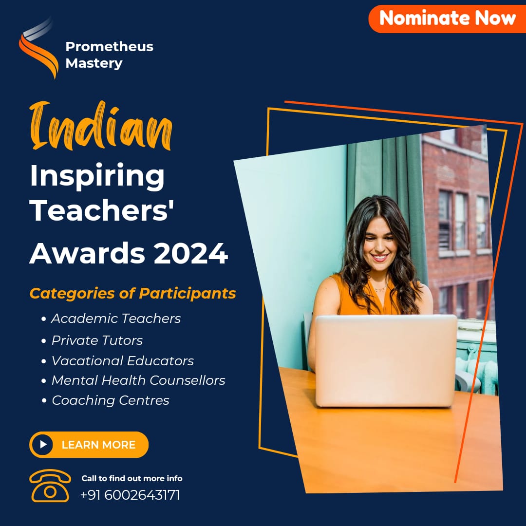 This is the award given to the most Inspiring Teachers in India, who inspires the students to go beyond the education, who teaches how to excel in Life. We appreciate your efforts and technique of education.