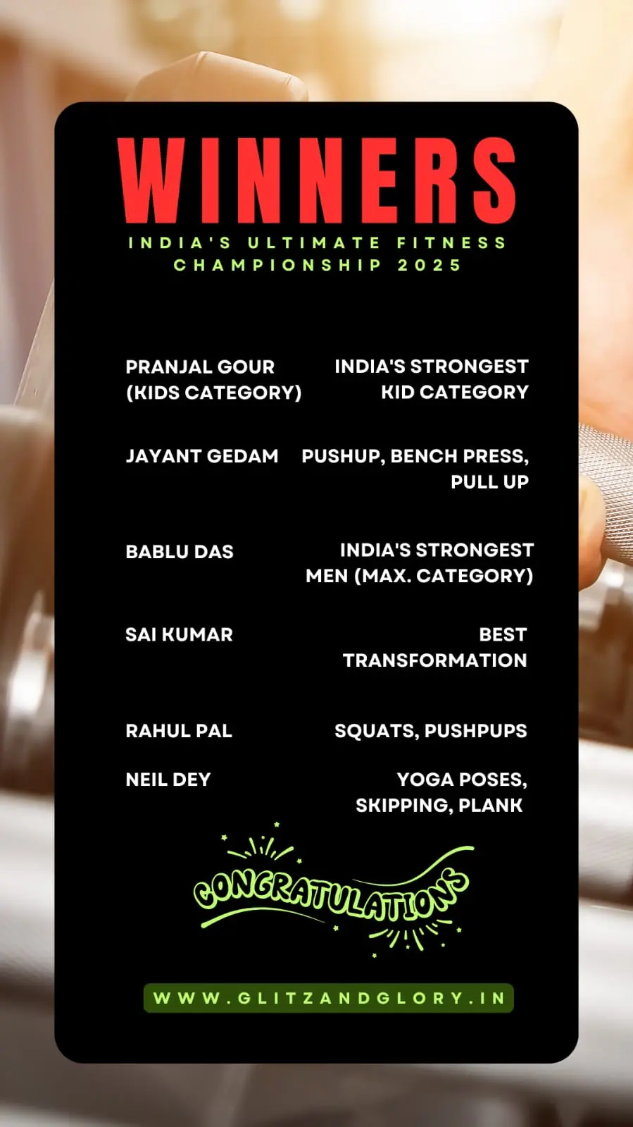 Here we brought to you the results of the Talent Hunt Contest title "INDIA'S ULTIMATE FITNESS CHAMPIONSHIP 2025".