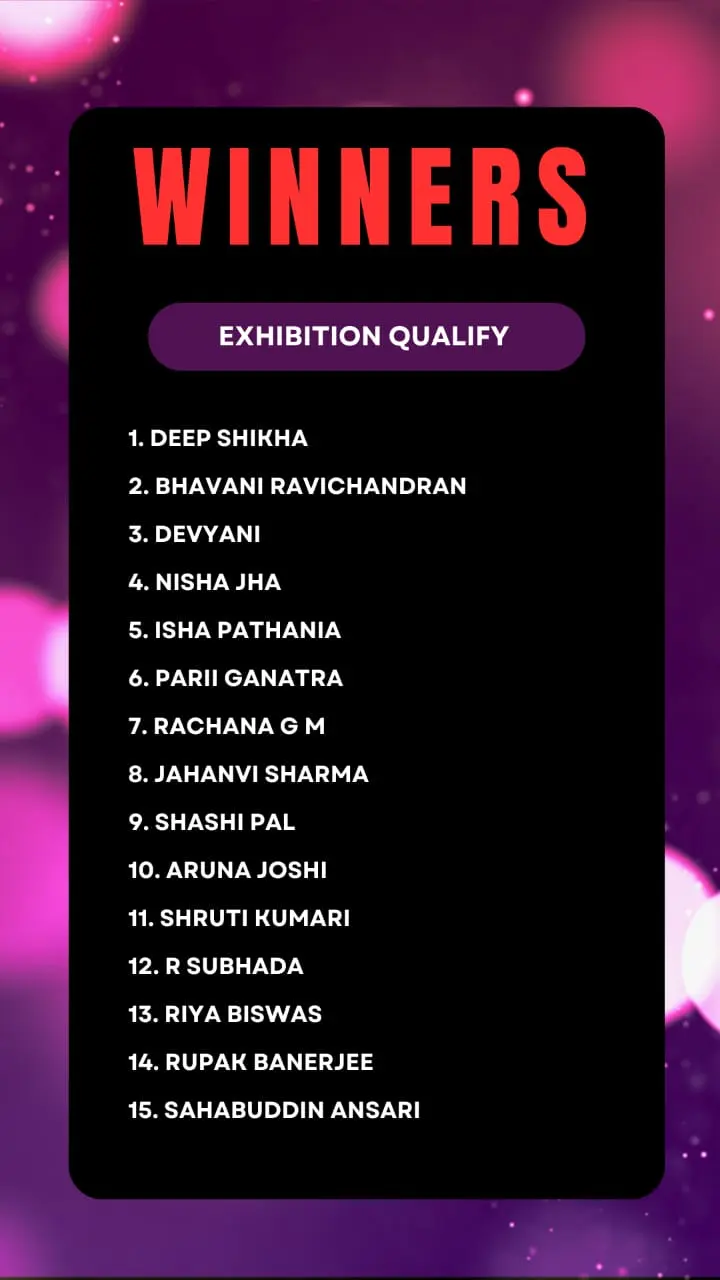 And finally we have the winners from Different parts of India. Your creativity & artworks will get the well deserved recognition & eligible for the exhibition.