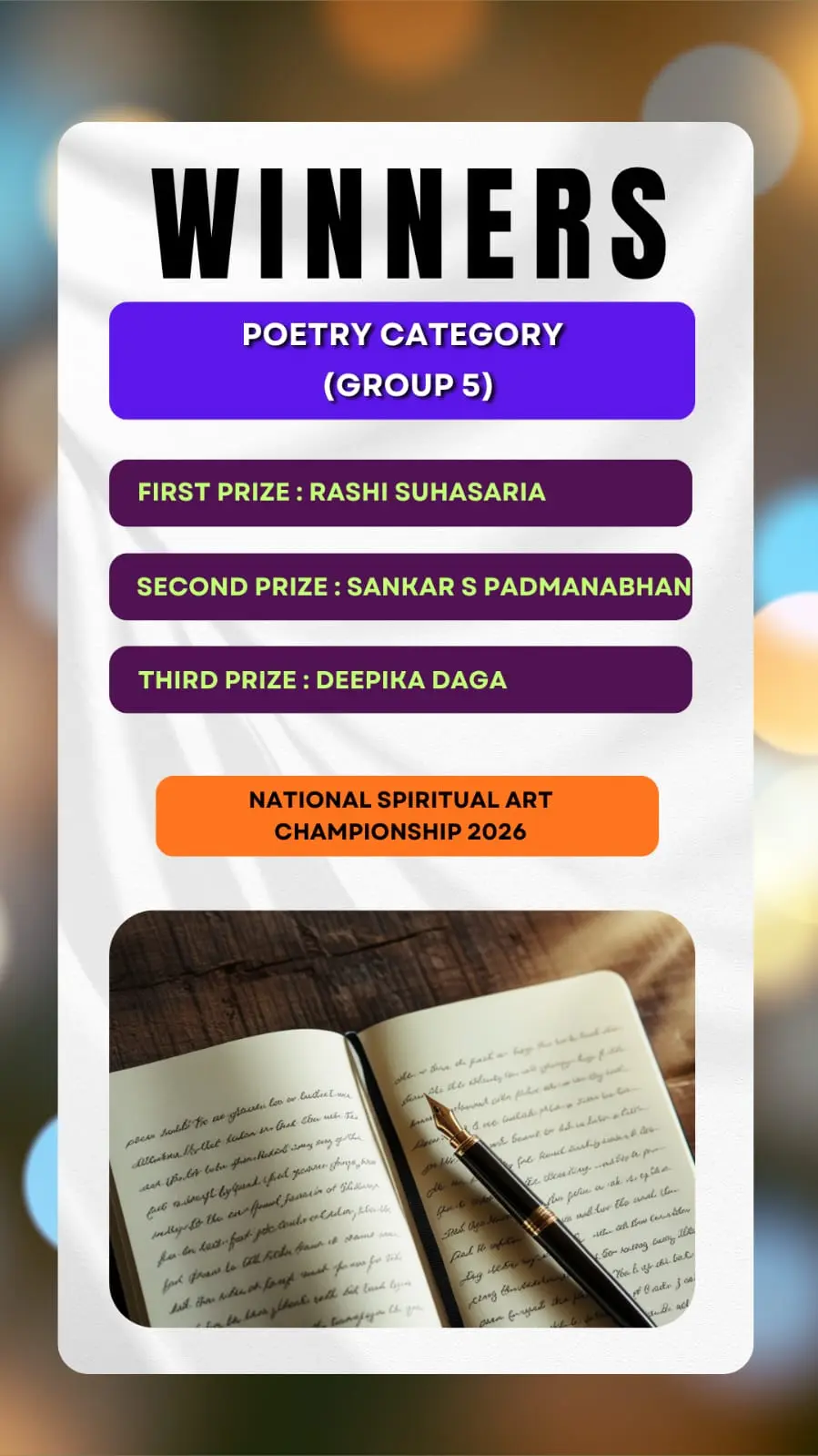 Here we brought to you the results of the Talent Hunt Contest title "National Spiritual Art Championship Results 2026".