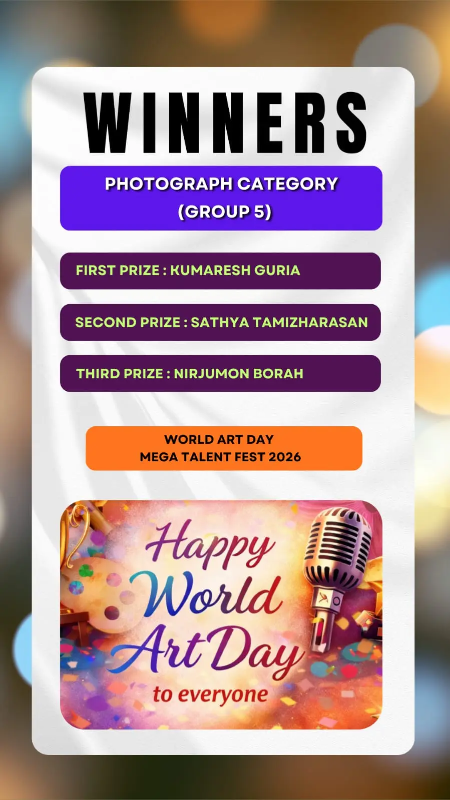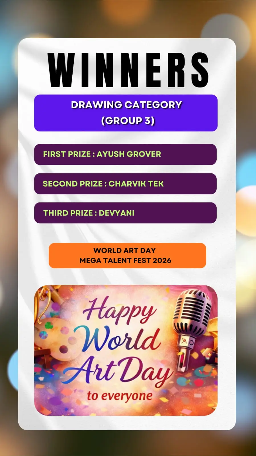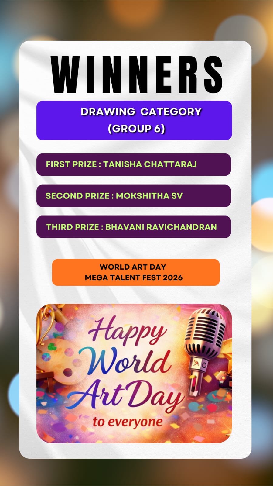 Here we brought to you the results of the Talent Hunt Contest title "World Art Day Mega Talent Fest 2026 Results " .