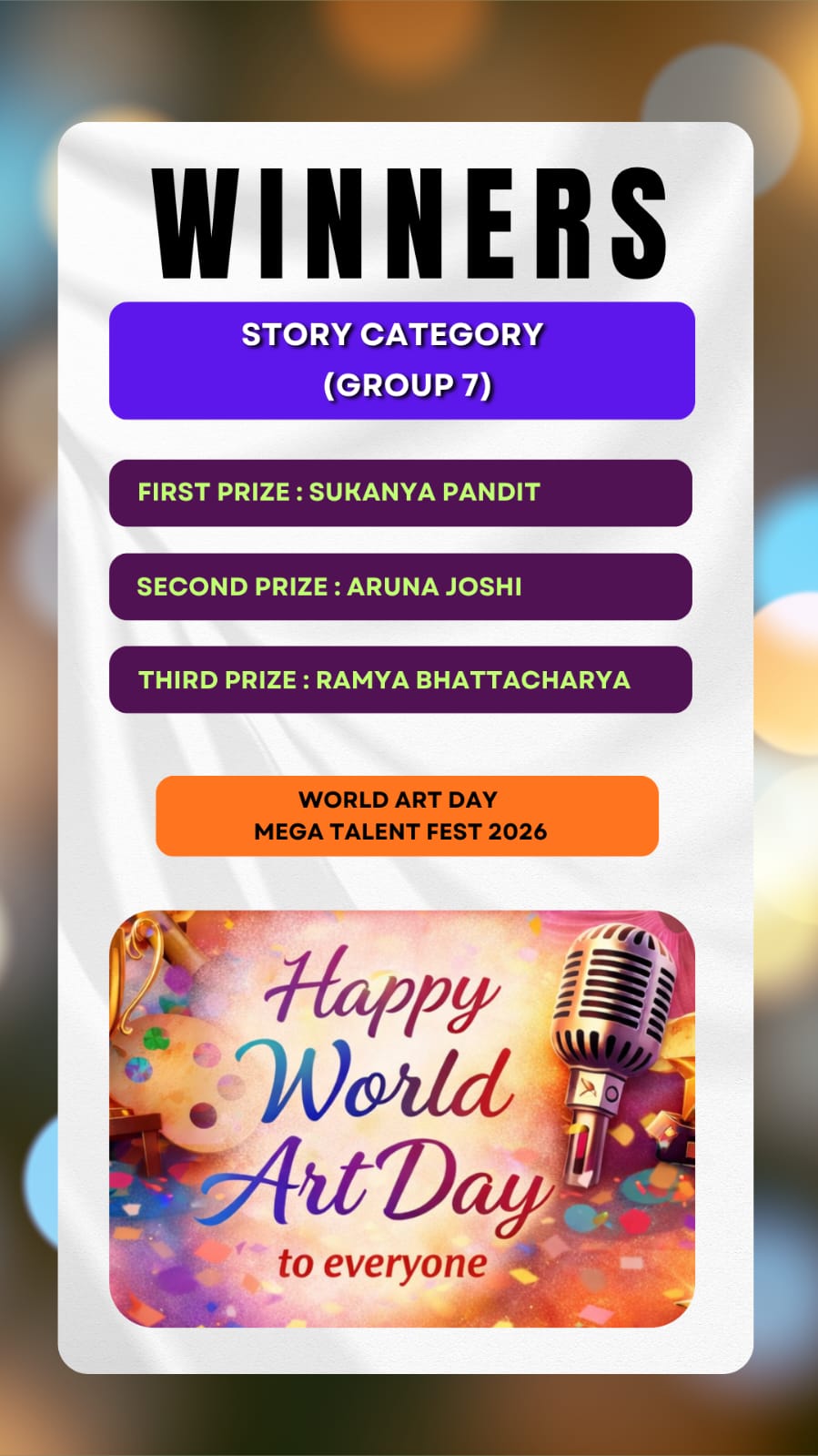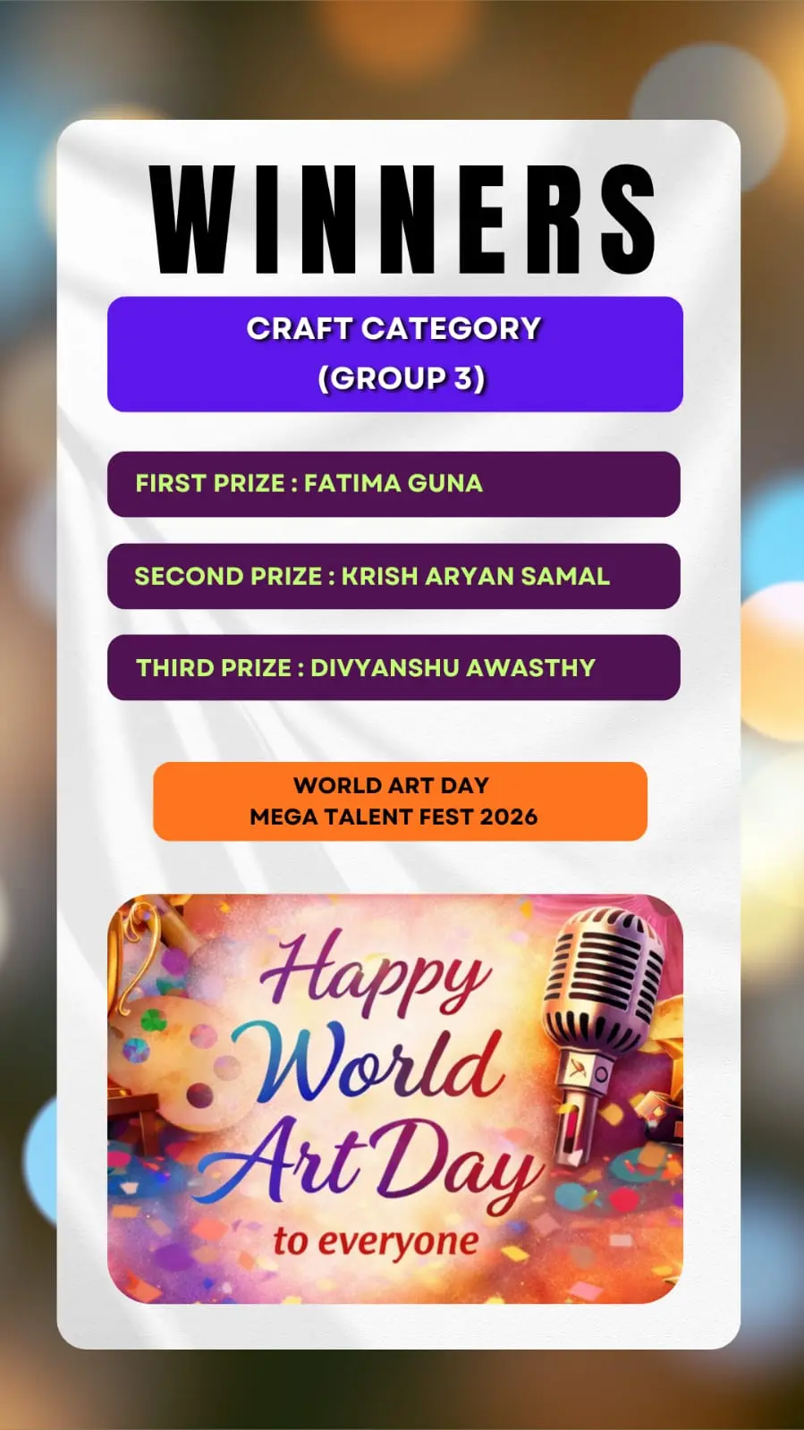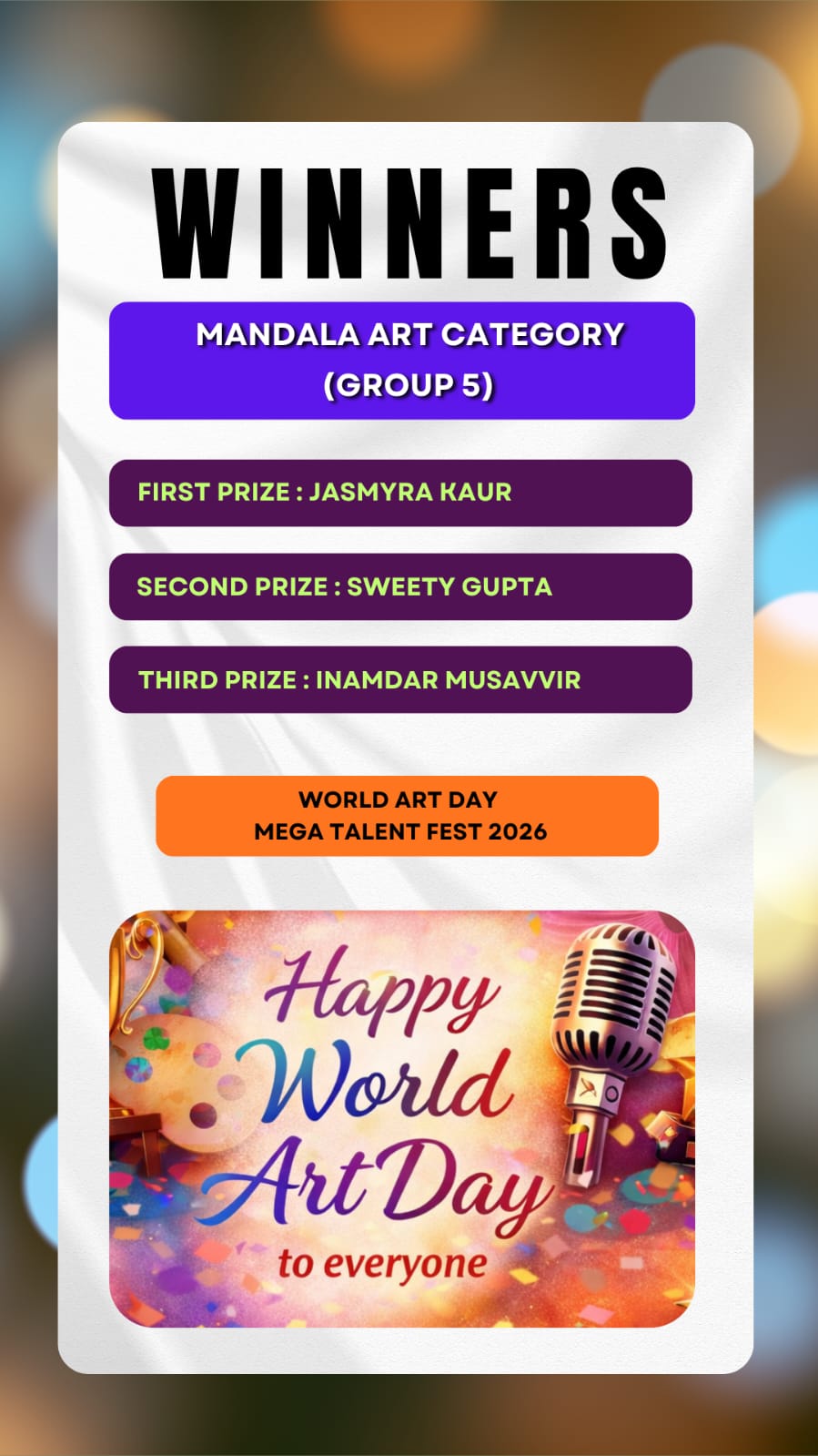 Here we brought to you the results of the Talent Hunt Contest title "World Art Day Mega Talent Fest 2026 Results " .